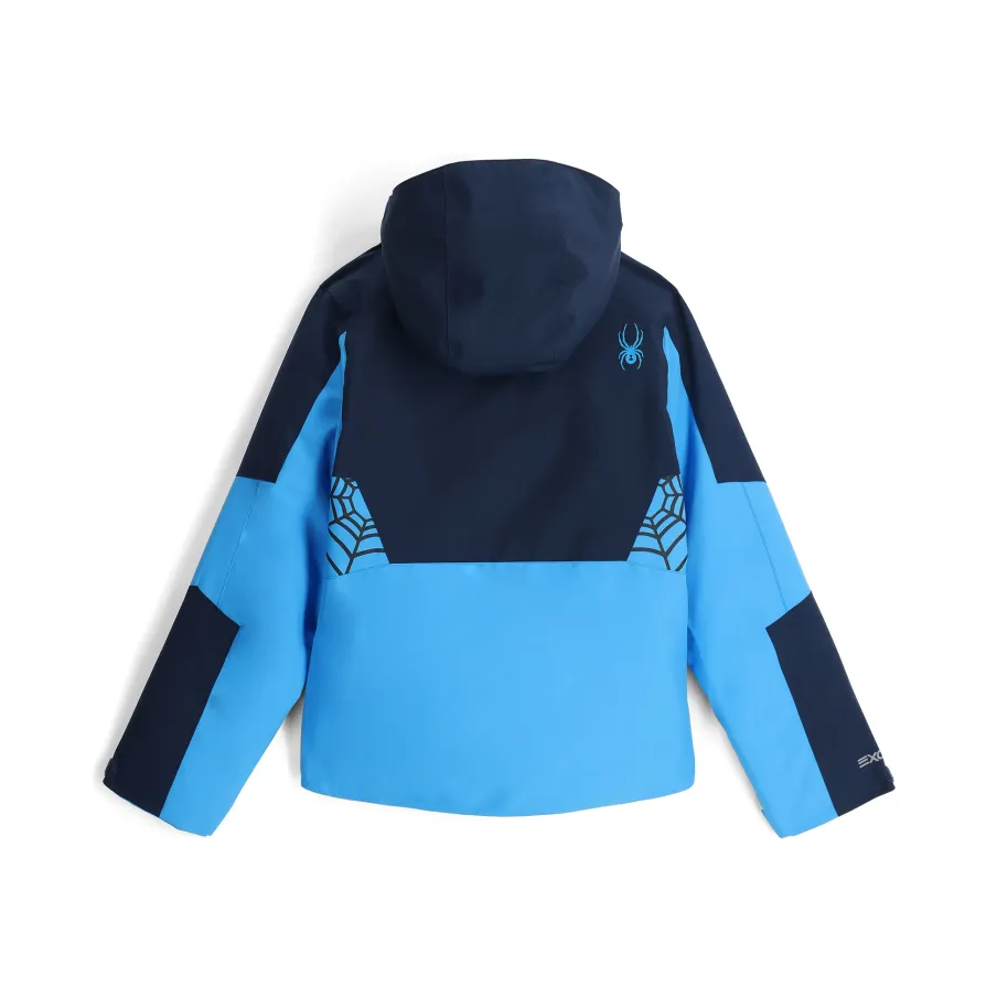 This Challenger includes all the bells and whistles: reflective detailing, data card, goggle pocket, removable hood with inner hood gaiter, taped seams, and a powder skirt with snaps and elastic grip. Featuring a 10k/10k stretch recycled EXO SHIELD fabric with DWR and EXO THERMO insulation (120g), the Challenger Jacket lets the little guys forget the cold and take on any part of the mountain.nEXO SHIELD 10K – Stretch Recycled Polyester Plain Weave with 10K/10K Laminate and DWRnEXO THERMO Insulation (120g)nComponents are produced without PFAS chemicalsnRemovable helmet compatible hood with inner hood gaiternYKK® Vislon® Center front zippernYKK® Zippered hand pocketsnSpyder web screenprint at back bodynFixed powder skirt with snaps and gripper elasticnData card, internal and mesh goggle pocketnAdjustable cuff tabs with gussets and interior stretch cuffs with thumb holesnCB length: Size 10 : 24″nFit: Standardn55% RECYCLED POLYESTER / 45% POLYESTER