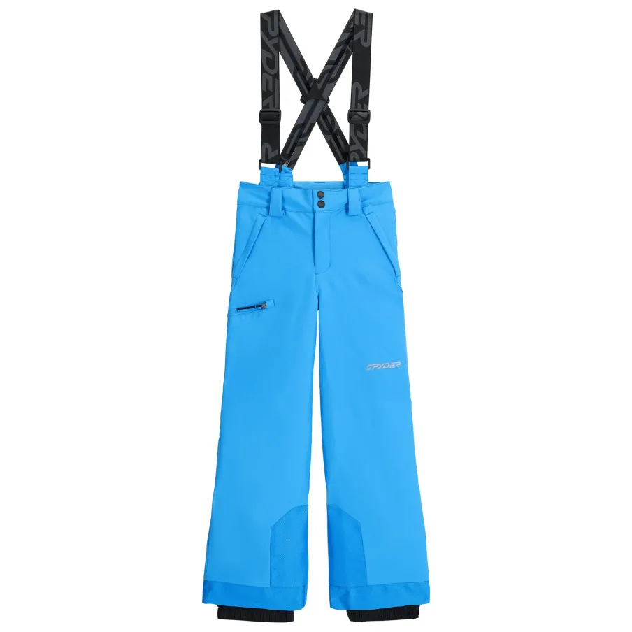 High-performing features and the full array of colors let you match the Propulsion pants with any Spyder jacket. The YKK® thigh pocket zipper, inner snow gaiters with gripper elastic and reinforced scuff cuffs and removable, adjustable suspenders help ensure staying warm and dry on the mountain or in the backyard on a snow day. EXO SHIELD 10K/10K recycled fabric and EXO THERMO insulation (60g) ensure you stay warm and dry on the mountain.nEXO SHIELD 10K – Stretch Recycled Polyester Plain Weave with 10K/10K Laminate and DWRnEXO THERMO Insulation (60G)nComponents are produced without PFAS chemicalsnRemovable adjustable suspendersnInternal adjustable waist construction and belt loopnYKK® Vislon® thigh pocket zippernYKK® Zippered hand pocketsnReinforced scuff cuff around bottom hemnInner snow gaiters with gripper elasticnSmall to Tall hem extends an additional 2″ when stitch is releasednInseam Length Size 10: 25″nFit: Standardn55% RECYCLED POLYESTER / 45% POLYESTER