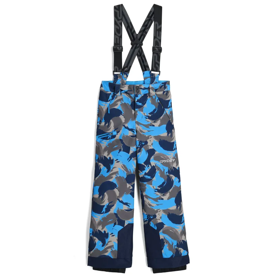 High-performing features and the full array of colors let you match the Propulsion pants with any Spyder jacket. The YKK® thigh pocket zipper, inner snow gaiters with gripper elastic and reinforced scuff cuffs and removable, adjustable suspenders help ensure staying warm and dry on the mountain or in the backyard on a snow day. EXO SHIELD 10K/10K recycled fabric and EXO THERMO insulation (60g) ensure you stay warm and dry on the mountain.nEXO SHIELD 10K – Stretch Recycled Polyester Plain Weave with 10K/10K Laminate and DWRnEXO THERMO Insulation (60G)nComponents are produced without PFAS chemicalsnRemovable adjustable suspendersnInternal adjustable waist construction and belt loopnYKK® Vislon® thigh pocket zippernYKK® Zippered hand pocketsnReinforced scuff cuff around bottom hemnInner snow gaiters with gripper elasticnSmall to Tall hem extends an additional 2″ when stitch is releasednInseam Length Size 10: 25″nFit: Standardn55% RECYCLED POLYESTER / 45% POLYESTER