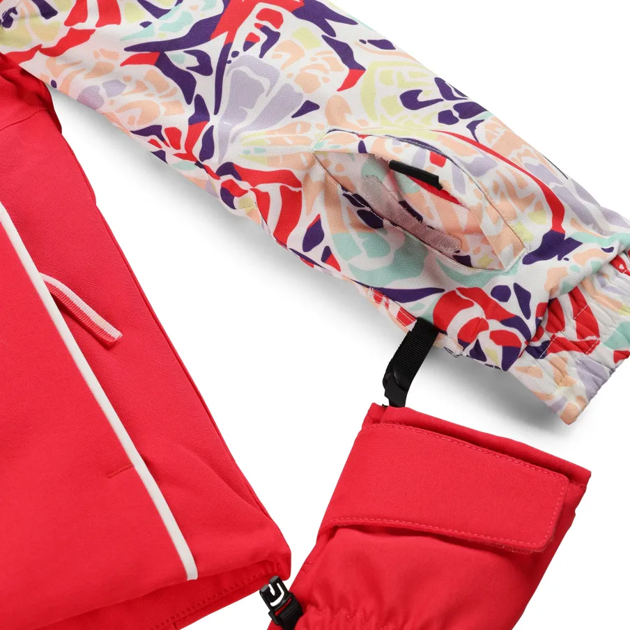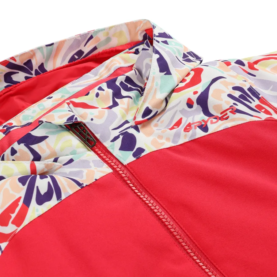 The little Girl’s Conquer Jacket features our new stretch EXO SHIELD recycled polyester, a 10k/10k waterproof/breathability rating, and 120g of EXO THERMO insulation, which will keep your princess warm and dry during all the adventures ahead. When mountain weather moves in, and temperatures drop, the Spyder Girl’s Conquer Jacket has you covered. “Small to Tall” sleeve cuff, let your little one grow 1.5″ in this jacket before they pass it on to a friend or little sister.nEXO SHIELD 10K – Stretch Recycled Polyester Plain Weave with 10K/10K Laminate and DWRnEXO THERMO Insulation (120g)nComponents are produced without PFAS chemicalsnFixed helmet compatible hood with inner hood gaiternYKK® Zippered hand pocketsnFixed powder skirt with gripper elasticnData card, internal and mesh goggle pocketnElasticized cuffs with glove/mitten attachmentnSmall to Tall feature allows sleeves to extend an additional 1.5″ when stitch is releasednCB Length: Size 5 : 18.5″nFit: Standardn100% RECYCLED POLYESTER