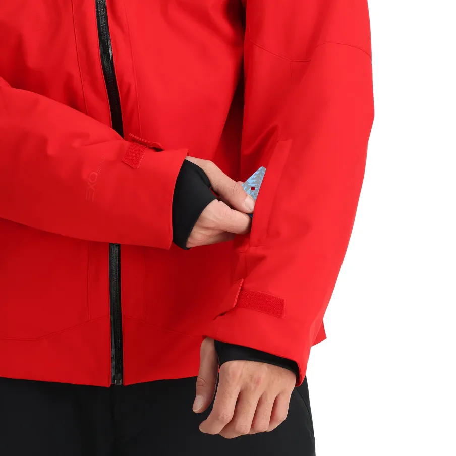 The Copper is packed with PrimaLoft® Black Eco insulation (80g) to ensure warmth in frigid conditions. Four-way stretch EXO SHIELD 20K/20K fabric made from recycled polyester protects against harsh winter weather. With bold new colorways and the symmetric design, it’s a quintessential Spyder jacket.nEXO SHIELD 20K – 4-way Stretch Recycled Polyester Plain Weave with 20K/20K Laminate and DWRnPrimaLoft® Black ECO Insulation (80g)nComponents are produced without PFAS chemicalsnRemovable helmet compatible hood with adjustable openingnYKK® Aquaguard center front zippernHand, chest and data card pocket with YKK® zippersnUnderarm ventilation system with YKK® zippersnBronze Chassis: Taffeta lining, fixed powder skirt with snap-back feature, mesh padding at shoulders, internal zippered pocket, mesh goggle pocket, and chamois lens wipenAdjustable cuff tabs with interior stretch cuffs and thumbholesnDrawcord adjustable hemnCB Length: Size M: 28 1/2″nFit: Standardn100% RECYCLED POLYESTER