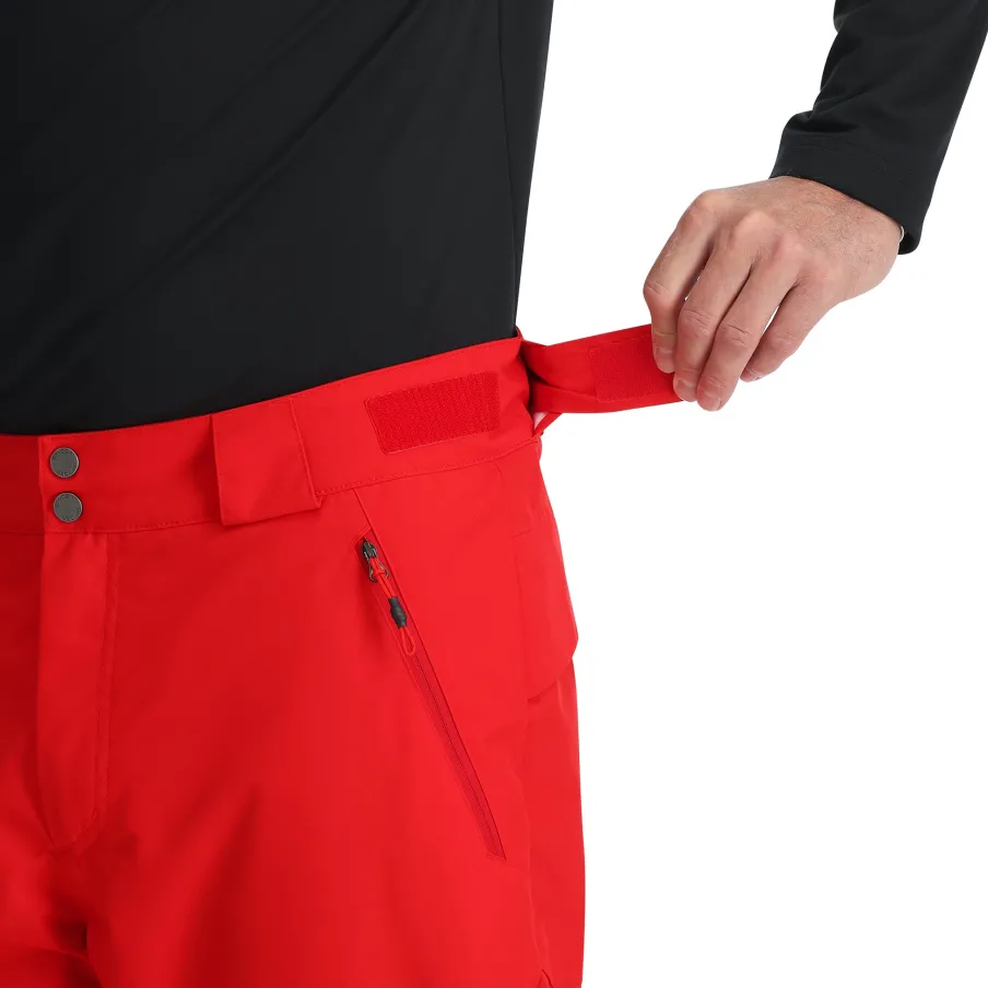 The Sentinel Pant boasts many features, including adjustable suspenders, thigh ventilation zips, and reinforced scuff cuffs. With Spyder’s innovative 4-way stretch 20k/20k EXO SHIELD technology, it offers enhanced mobility and durability. A 20K/20K laminate and PrimaLoft® Black Eco Insulation (40g) privides waterproof warmth, ensuring you stay comfortable until the last chairlift. nEXO SHIELD 20K – 4-way Stretch Recycled Polyester Plain Weave with 20K/20K Laminate and DWRnPrimaLoft® Black ECO Insulation (40g)nComponents are produced without PFAS chemicalsnHand pockets with YKK® zippersnThigh ventilation system with YKK® zippersnAdjustable waist construction and belt loopsnArticulated knee constructionnReinforced scuff guard around the bottom hemnInner snow gaiters with gripper elasticnInseam Length Size M: 32″nFit: Standardn100% RECYCLED POLYESTER