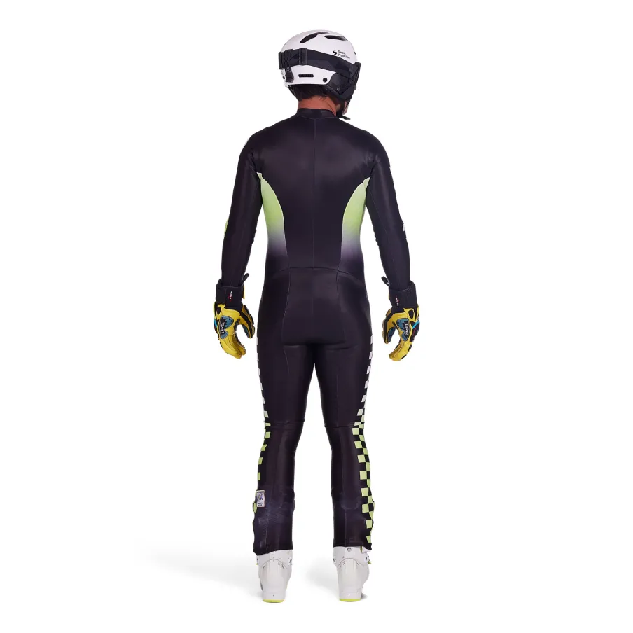Spyder’s race suits are trusted by some of the best alpine skiers for a reason: because Spyder technology allows them to ski their fastest. X-Static® technology allows for optimal porosity performance, while still passing the 30ml FIS test. X-Static® is intended to keep the suit smelling fresh for longer between washes to preserve the longevity of the suit. Grip elastic at the hem ensures that the suit stays dialed in place when it matters most.nPolyester Diamond Knit 3L Bonded for Optimal Air Porosity Performance with X-Static®nAnatomically designed contour fitnFront stretch YKK zippernThumb anchorsnGripper elastic at hemnPasses 30ml FIS testn80% POLYESTER /20% POLYURETHANE (PU)