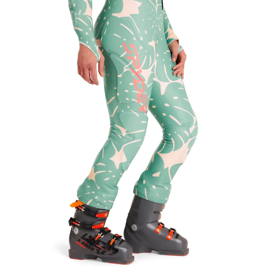 Designed specifically to meet the needs of skiers new to the race course, the Nine Ninety delivers reliable performance Spyder is known for without the price of other race suits. Equipped with forearm, elbow, upper arm, thigh, and knee pads, the Nine Ninety moves seamlessly from Slalom to Downhill, while providing the protection you want and the mobility you need.nMicro Polyester Knit Bonded to a Breathable LaminatenAnatomically designed contour fitnForearm, elbow, upper arm, thigh and knee padsnFront stretch YKK zippernThumb anchorsnGripper elastic at hemn80% POLYESTER /20% POLYURETHANE (PU)