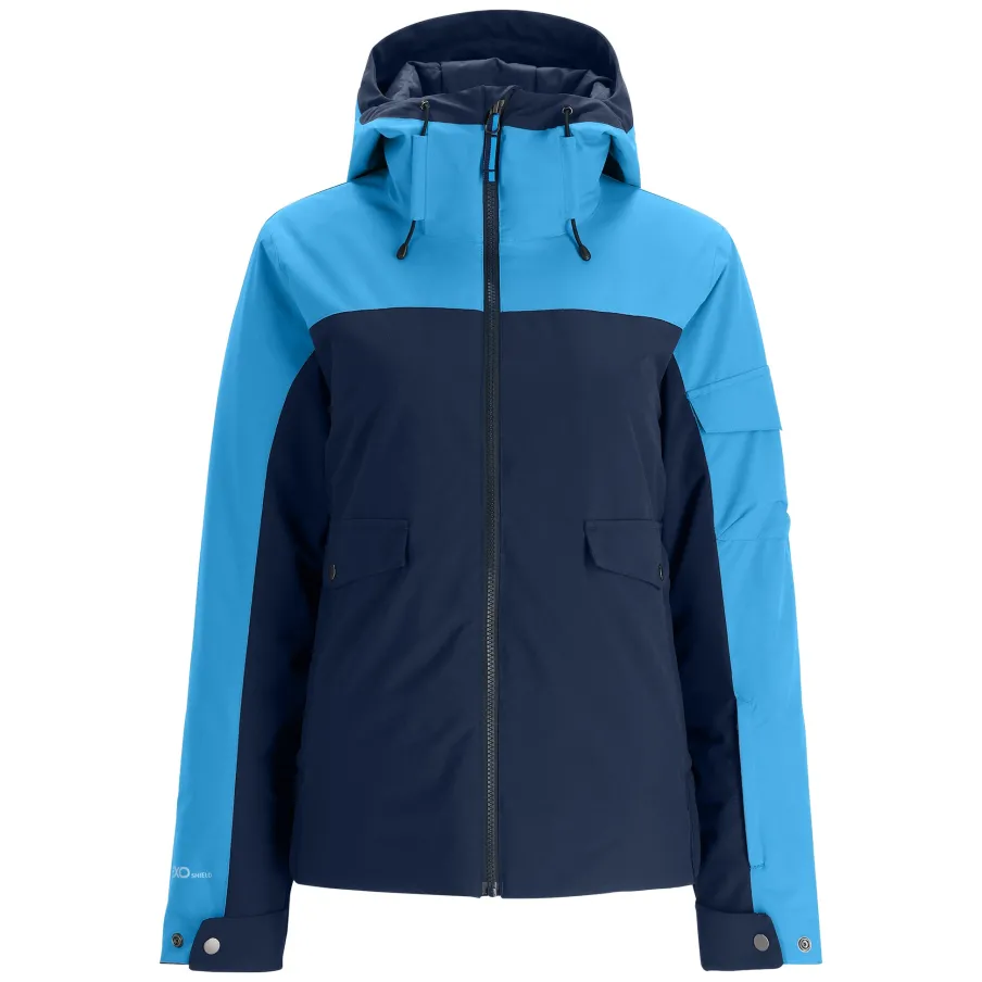 The Optimist exudes confidence in a bomber sillhouette. When the temps drop, 100g of PrimaLoft® Black Eco insulation is there to help. A 20k/20k laminate and 4-way stretch EXO SHIELD technology ensure that moisture stays out without restricting your movement. Whether taking a stroll around your neighborhood, the ski village, or on the mountain, the Optimist offers a versatile style that pops.nEXO SHIELD 20K – 4-way Stretch Recycled Polyester Plain Weave with 20K/20K Laminate and DWRnPrimaLoft® Black ECO Insulation (100g)nComponents are produced without PFAS chemicalsnFixed hood with adjustable opening fits over most helmetsnYKK® Vislon® center front zippernYKK® reverse coil hand pocket zippersnBronze Chassis: Taffeta lining, fixed powder skirt with snap-back feature, mesh padding at shoulders, internal zippered pocket, mesh goggle pocket, and chamois lens wipenUnderarm ventilation systemnAdjustable cuff tabs with interior stretch cuffs and thumbholesnCB Length: Size 8: 25 .5″nFit: Standardn100% RECYCLED POLYESTER