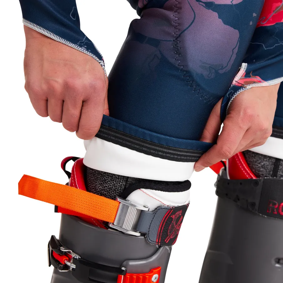 Setting the standard in ski racing protection and versatility, the Performance GS race suit has explosive new designs, an anatomically contoured fit, and key pad placement for ultimate protection.nMicro Polyester Knit Bonded to a Breathable LaminatenAnatomically designed contour fitnForearm, elbow, upper arm, thigh and knee padsnFront stretch YKK zippernThumb anchorsnGripper elastic at hemnPasses 30ml FIS testn80% POLYESTER /20% POLYURETHANE (PU)