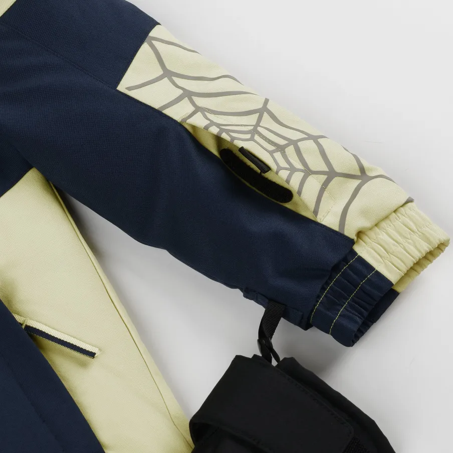 This Challenger includes all the bells and whistles: reflective detailing, data card, goggle pocket, removable hood with inner hood gaiter, taped seams, and a powder skirt with snaps and elastic grip. Featuring a 10k/10k stretch recycled EXO SHIELD fabric with DWR and EXO THERMO insulation (120g), the Challenger Jacket lets the little guys forget the cold and take on any part of the mountain.nEXO SHIELD 10K – Stretch Recycled Polyester Plain Weave with 10K/10K Laminate and DWRnEXO THERMO Insulation (120g)nComponents are produced without PFAS chemicalsnRemovable helmet compatible hood with inner hood gaiternYKK® Vislon® center front zippernYKK® Zippered hand pocketsnSpyder web screenprint on side armsnFixed powder skirt with snaps and gripper elasticnData card, internal and mesh goggle pocketnElasticized cuffs with glove/mitten attachmentnSmall to Tall feature allows sleeves to extend an additional 1.5″ when stitch is releasednCB Length: Size 5: 19 1/4″nFit: Standardn55% RECYCLED POLYESTER / 45% POLYESTER