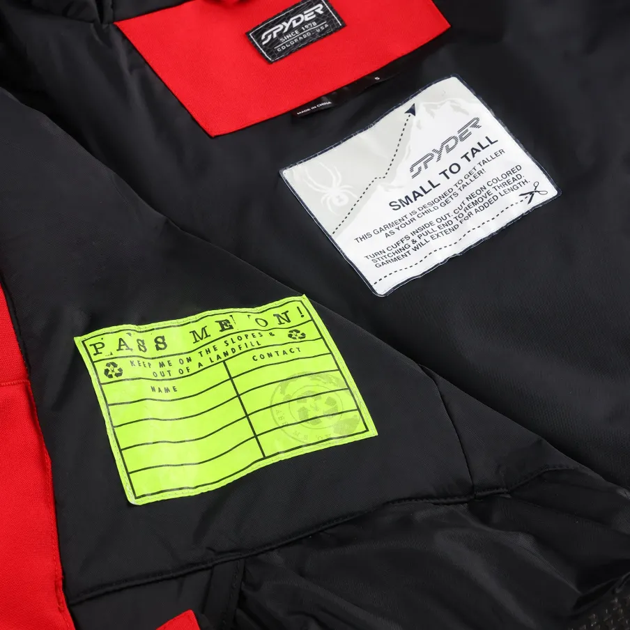 The Slash Jacket has all our favorite features from our adult jackets packed into a Kids’ piece. EXO THERMO insulation (120g) will keep your kiddo warm, while zippered hand pockets will secure their mid-day snacks. The Slash has all of your bases covered.nEXO SHIELD 10K – Stretch Recycled Polyester Plain Weave with 10K/10K Laminate and DWRnEXO THERMO Insulation (120g)nComponents are produced without PFAS chemicalsnFixed helmet compatible hood with inner hood gaiternYKK® Center front zippernYKK® Zippered hand pocketsnData card, internal and mesh goggle pocketnElasticized cuffs with glove/mitten attachmentnSmall to Tall feature allows sleeves to extend an additional 1.5″ when stitch is releasednCB Length: Size 5: 19 1/4″nFit: Standardn55% RECYCLED POLYESTER / 45% POLYESTER