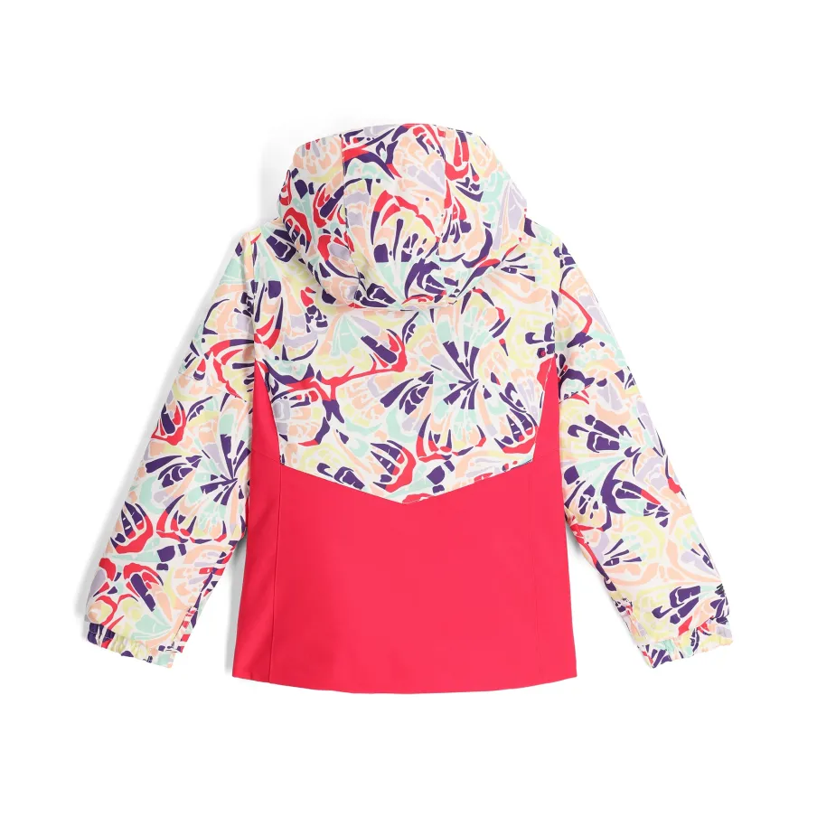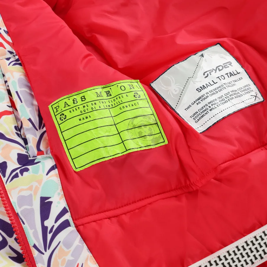 The little Girl’s Conquer Jacket features our new stretch EXO SHIELD recycled polyester, a 10k/10k waterproof/breathability rating, and 120g of EXO THERMO insulation, which will keep your princess warm and dry during all the adventures ahead. When mountain weather moves in, and temperatures drop, the Spyder Girl’s Conquer Jacket has you covered. “Small to Tall” sleeve cuff, let your little one grow 1.5″ in this jacket before they pass it on to a friend or little sister.nEXO SHIELD 10K – Stretch Recycled Polyester Plain Weave with 10K/10K Laminate and DWRnEXO THERMO Insulation (120g)nComponents are produced without PFAS chemicalsnFixed helmet compatible hood with inner hood gaiternYKK® Zippered hand pocketsnFixed powder skirt with gripper elasticnData card, internal and mesh goggle pocketnElasticized cuffs with glove/mitten attachmentnSmall to Tall feature allows sleeves to extend an additional 1.5″ when stitch is releasednCB Length: Size 5 : 18.5″nFit: Standardn100% RECYCLED POLYESTER