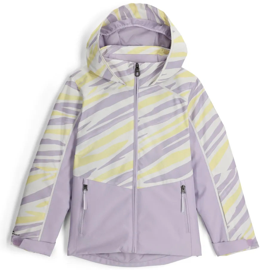 The Spyder Girl’s Conquer Jacket features our new stretch EXO SHIELD recycled polyester, a 10k/10k waterproof/breathability rating, and 120g of EXO THERMO insulation, which will keep your princess warm and dry during all the adventures ahead. When mountain weather moves in, and temperatures drop, the Spyder Girl’s Conquer Jacket has you covered.nEXO SHIELD 10K – Stretch Recycled Polyester Plain Weave with 10K/10K Laminate and DWRnEXO THERMO Insulation (120g)nComponents are produced without PFAS chemicalsnFixed helmet compatible hood with inner hood gaiternYKK® Reverse coil center front zipper under kissing weltnYKK® zippered hand pocketsnFixed powder skirt with snaps and gripper elasticnData card, internal and mesh goggle pocketnAdjustable cuff tabs with gussets and interior stretch cuffs with thumbholesnDrawcord adjustable hemnCB length: Size 10 : 22.5″nFit: Standardn100% RECYCLED POLYESTER