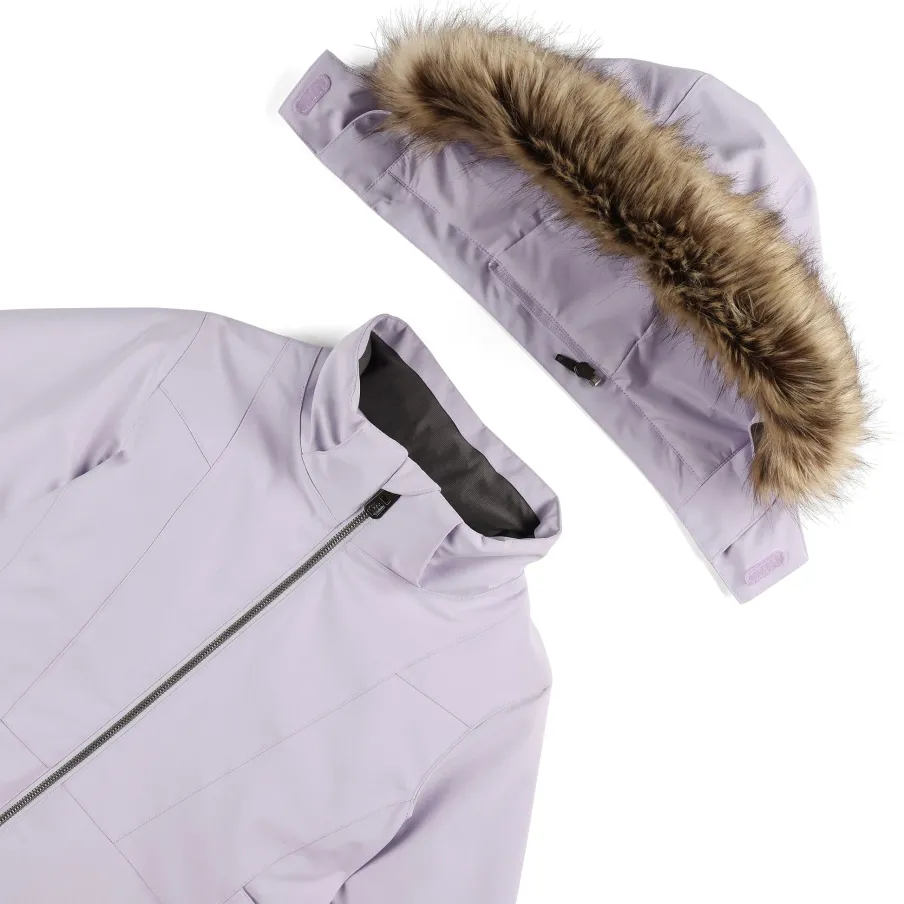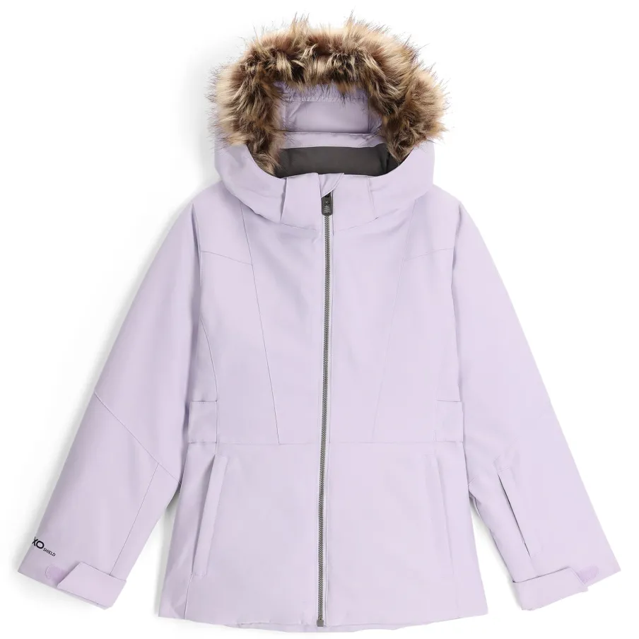 The Lola jacket is a perennial best-seller for its style and well-crafted details: a removable hood with an inner gaiter, adjustable cuffs, and an interior sleeve with thumb holes. Thanks to 120g EXO Thermo insulation and EXO SHIELD 10k stretch polyester, the Lola is the industry standard in waterproofing and insulation. Designed for fun anywhere, whether it’s the slopes, the base, or the playground in the wintertime, the Lola can do it all. “Small to Tall” sleeve cuff, let your little one grow 1.5″ in this jacket before they pass it on to a friend or little sister.nEXO SHIELD 10K – Stretch Recycled Polyester Plain Weave with 10K/10K Laminate and DWRnEXO THERMO Insulation (120g)nComponents are produced without PFAS chemicalsnRemovable helmet compatible hood with inner hood gaiter and detachable faux fur trimnYKK® Metaluxe® center front zippernYKK® Zippered hand pocketsnFixed powder skirt with gripper elasticnData card, internal and mesh goggle pocketnElasticized cuffs with glove/mitten attachmentnSmall to Tall feature allows sleeves to extend an additional 1.5″ when stitch is releasednCB length: Size 5 : 18.5″nFit: Standardn100% RECYCLED POLYESTER