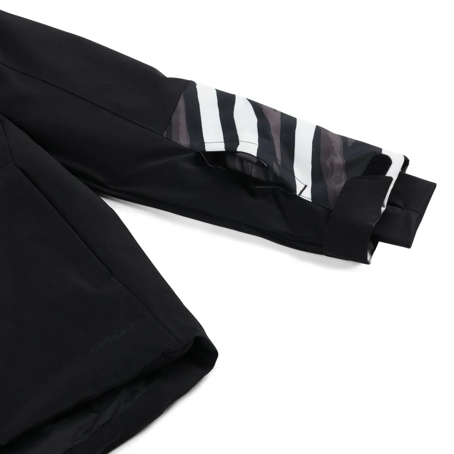 The Mila Jacket uses EXO SHIELD 10k stretch recycled polyester and 120g EXO THERMO insulation. With plenty of YKK® zippered pockets to store everything from a phone to extra snacks and a ski pass, the Mila is just as unstoppable as the girls who wear it.nEXO SHIELD 10K – Stretch Recycled Polyester Plain Weave with 10K/10K Laminate and PFC-Free DWRnEXO THERMO Insulation (120g)nComponents are produced without PFAS chemicalsnRemovable helmet compatible hood with inner hood gaiternYKK® Vislon® center front zippernYKK® Vislon® chest pocket zippernYKK® hand pocket zippersnFixed powder skirt with snaps and gripper elasticnData card, internal and mesh goggle pocketnAdjustable cuff tabs with gussets and interior stretch cuffs with thumbholesnDrawcord adjustable hemnCB length: Size 10 : 22.5″nFit: Standardn100% RECYCLED POLYESTER