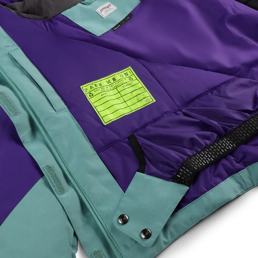 Little racers with big style meet their match in the Zoey jacket. It includes all the characteristics of our top-shelf jackets, including a fixed hood with an inner hood gaiter, taped seams, and a powder skirt with snaps and an elastic grip. Insulated with 120g of EXO THERMO insulation, lined with a 10k/10k stretch EXO SHIELD polyester plain weave laminate, and water-repellent fabric, the Zoey brings all the style without sacrificing any of the functionality.nEXO SHIELD 10K – Stretch Recycled Polyester Plain Weave with 10K/10K Laminate and DWRnEXO THERMO Insulation (120g)nComponents are produced without PFAS chemicalsnFixed helmet compatible hood with inner hood gaiternYKK® center front zippernZippered hand pocketsnFixed powder skirt with gripper elasticnData card, internal and mesh goggle pocketnAdjustable cuff tabs with gussetsnDrawcord adjustable hemnCB length: Size 10 : 22″nFit: Standardn100% RECYCLED POLYESTER