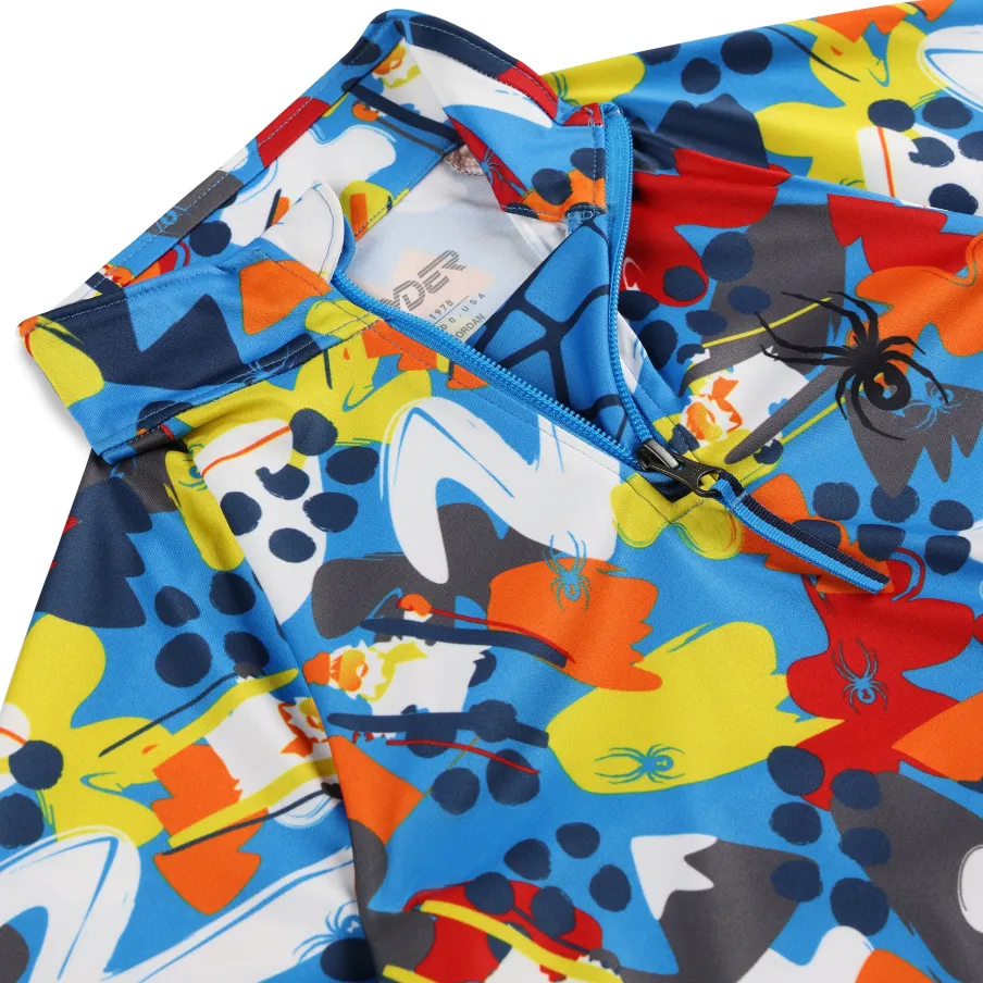 The Glacial Half-Zip lets your little guy stand out in even the biggest crowds with bright graphics and Spyder branding. This piece can be worn next to skin or as a light layering option.nStretch Polyester Interlock UPF 50+nYKK® center front zippernCustom seasonal Spyder graphicsnCB Length: Size 5: 17 1/4″nFit: Fittedn100% POLYESTER