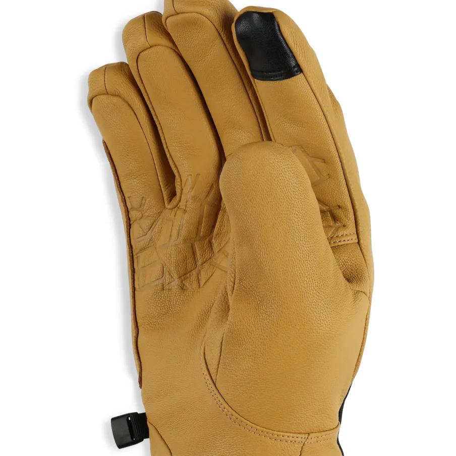 Classic leather work gloves are a favorite among skiers. We’ve elevated the classic work glove with EXO SHIELD waterproofing on plush goat leather, along with PrimaLoft® Silver Eco insulation to keep your fingers warm. Additionally, a hook and loop secured cuff tab seals out snow and moisture at the wrist.nEXO SHIELD Goat D.D Leather with W/RnEXO SHIELD Waterproof/Breathable InsertnPrimaLoft® Silver ECO Insulation (133g)nComponents are produced without PFAS chemicalsnHook and loop secured cuff tabnGathered elastic at wristnClip to attach mitts togethern100% LEATHER