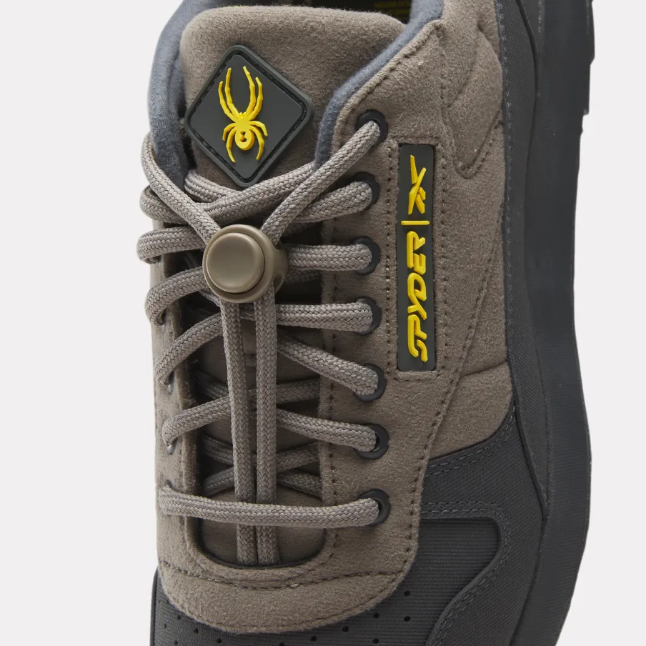 Designed in collaboration with Spyder, these trail-inspired shoes help you handle the conditions from the city to the slopes. Taking their design cues from the Reebok ’90s outdoor catalog and the archive model Harrier Trail, they have a weather-resistant upper and a rugged rubber outsole.nLace closurenTextile liningnTrail-Inspired rubber outsolenA flow molded tongue logo bridges the gap between ski culture and streetwearnSpyder owns the mountain. Reebok owns the street. Custom Spyder graphics on the vamp and toe cap unite the twonA custom sockliner comes with every pair for a limited-edition looknProduct Color: Cement/Pure Grey/Boldly Yellown