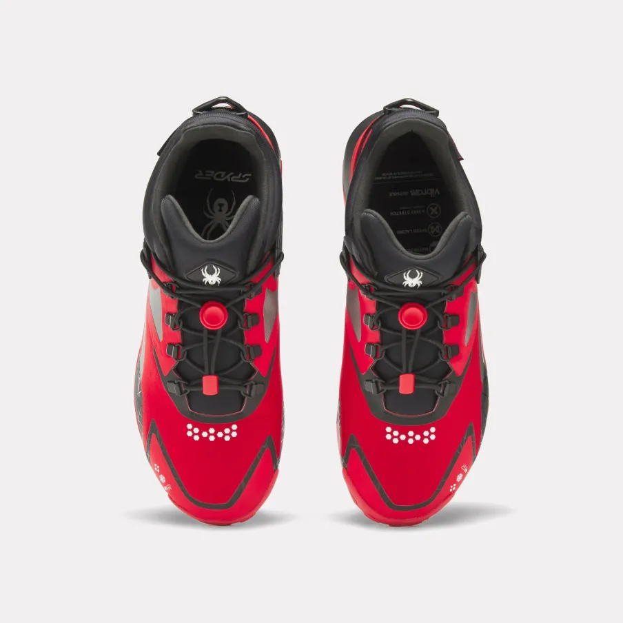 Street meets ski in these Reebok training shoes designed in collaboration with Spyder. Cold temperatures and falling snow won’t stop your workout in shoes built with an outdoor ready upper and cozy collar and tongue lining. A Vibram Evo Trek® outsole gives you confidence as you navigate frosty grass and wet stairs.nOutdoor ready uppernLace closurenInsulated tongue and collarnTextile liningnVibram® Evo Trek provides an all-terrain gripnMid cutnA flow molded tongue logo and speed lacing bridge the gap between ski culture and streetwearnSpyder owns the mountain. Reebok owns the street. Custom Spyder graphics on the toe cap unite the twonSpyder graphics on the sockliner highlight the collaborationnProduct color : Scarlet / Core Black / Pewtern