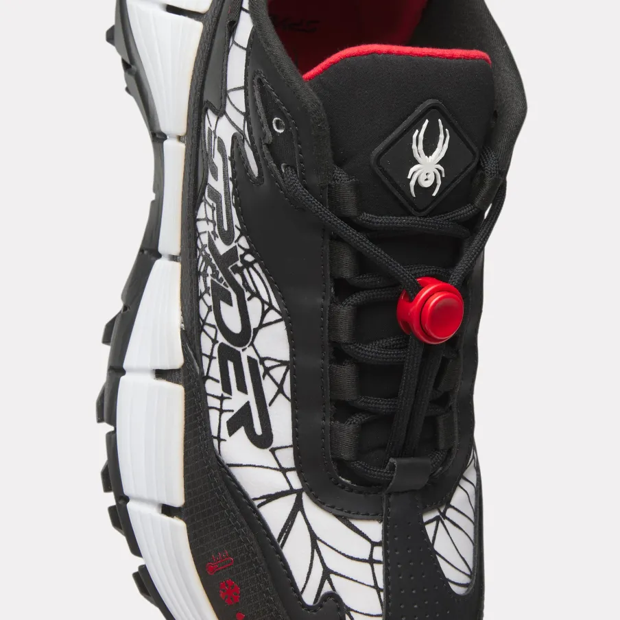 From the city to the slopes, these trail-inspired shoes from Reebok help you handle the conditions. Designed in collaboration with Spyder, they have a CORDURA® re/cor® upper that’s rugged and durable. An eVent DVdry® waterproof and breathable membrane helps keep feet dry. Angled forefoot lugs on the Vibram® Ecostep outsole give you traction whether you’re going uphill or downhill.nWater-resistant eVent® uppernLace closurenTextile liningnFloatride Energy FoamnTextile liningnVibram® Ecostep provides all-terrain gripnA flow molded tongue logo and speed lacing bridge the gap between ski culture and streetwearnSpyder owns the mountain. Reebok owns the street. Custom Spyder allover silicone graphics unite the twonSpyder graphics on the sockliner highlight the collaborationnProduct color : White / Core Black / Scarlet