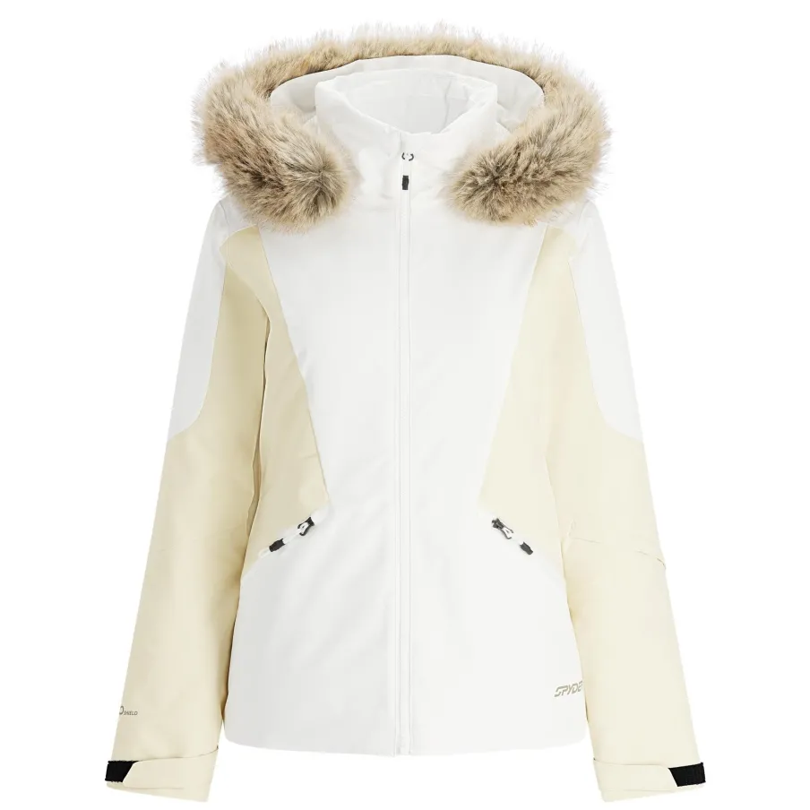 The Vida Jacket combines style and functionality with classic design lines and a luxurious faux fur-accented hood for that après look. Showcasing our 4-way stretch EXO SHIELD technology with 100 grams of PrimaLoft® Black Insulation and a 20K laminate, you’ll stay warm and protected as temperatures drop. The Vida also features essential ski elements like a powder skirt, inner pockets, and underarm venting for technical comfort.nEXO SHIELD 20K – 4-way Stretch Recycled Polyester Plain Weave with 20K/20K Laminate and DWRnFaux FurnPrimaLoft® Black ECO Insulation (100g)nComponents are produced without PFAS chemicalsnFixed hood with snap off faux fur trim fits over most helmetsnCord lock adjustment at back hoodnYKK® Vislon® center front zippernBronze Chassis: Taffeta lining, fixed powder skirt with snap-back feature, mesh padding at shoulders, internal zippered pocket, mesh goggle pocket, and chamois lens wipenYKK® zippered data card pocket on sleevenUnderarm ventilation systemnAdjustable cuff tabs with interior stretch cuffs and thumbholesnCB Length: Size 8: 25.5″nFit: Standardn100% RECYCLED POLYESTER